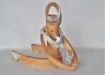 Cette sculpture explore le concept d’humanité. Sa structure est faite avec des bandes d’argiles, par analogie aux sculptures filaires de Calder. Elle représente un corps humain construit sur quatre plans : le cercle des bras, la colonne, le diaphragme et la base. L’homme aime la nature. Ses mains unies tiennent avec sensibilité une fleur, il lui sourit et réchauffe celle-ci. Sa colonne est comme la tige, son diaphragme comme ses feuilles et la tête comme la fleur. La colonne contient de l’eau, devient un soliflore et nourrit la fleur réelle: l’union est complète. L’homme aime les arts : la sculpture, la musique (la flûte), la danse (position des bras et de la tête) la peinture (application de l’engobe) et le dessin (filaire). L’homme aime le sport. Ses jambes sont des rames d’aviron qui en prenant appui sur l’eau, propulsent le bateau.