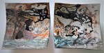 Ce diptyque des plateaux est une représentation surréaliste du temps. Le premier écran dépeint une vallée entourée par une montagne, avant le lever du soleil. Au-dessus des nouages, le temps est arrêté pour un cavalier solitaire ébloui devant la beauté du paysage. Les cavaliers d’Eadweard Muybridge interprètent la cinétique : statique, marche et accélération. Le nouage noir fuit le jour dans l’écran juxtaposé, royaume des rêves au sein de la nuit. Au bas de l’écran, la rivière nous rappelle que le temps s’écoule dans une seule direction comme l’eau.
