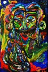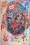 “Firebird” is the central figure of the painting acting as a lighthouse as the bird is taking fire through the process of transformation. It symbolizes the decision of the artist to submit to the art, to go in the darkness and rip it apart in order to liberate the powerful expression of art and bring it forward into the world. This process could be painful as the artist gives his soul to the art in order to find it. The urgency for the artist to respond to his calling is related to the acceptance of its consequences, the salvation of the soul and the response of the world.