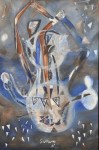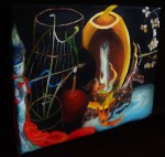 This painting illustrates a sphere that moves in the gut from one end to the other. The displacement is not necessary straightforward because the digestive process is not either. The important thing to understand is that digestion takes time and to be patient. The two saxophones that frame the picture are instruments which force the activation of breath and indirectly help the digestion. The water element is a soothing and helps to heal. The piano music that spreads on the waves reinforces this aspect as it changes the structure of the water and thus the body. In the middle we also see the spine as a lighthouse and a sycamore seed spiraling in the vertical direction. Arriving at the bottom the sycamore becomes a symbol of the life cycle as it represents the seed and the tree in the same time, concluding that digestion is a lifelong process.