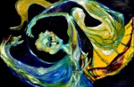 “Paloma” is a study of flamenco by exposing its raw energy through the use of printing techniques applied by means of acrylics on canvas. Through this paining I try to express the passion of the flamenco dancer to find herself in the purest form, in a mystical, powerful experience. The symbol of the dove was chosen because it is strong in the Spanish culture, it represents purity and innocence and it also represents the gift of the Creator within us, as the Holy Spirit appears as a dove. Several elements are related to the flamenco culture: the candle, the mirror, the crowd, a dancer in red and black, a lace fan, a golden earing, the guitar. The border of the painting shows abstract representations of a dancer dancing on the shore of the sea circling around the head. The soft pastel colors were used to release the tension of the center of the painting and give the impression of total freedom and peace as the soul finds its way, connecting once more to the dove as symbol for peace.