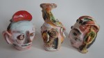 The heads where made using the coil technique. Coil and slab elements were assembled on the ovoid shapes and together with engraving and sgraffito techniques were used to define the features and character of the heads. Engobes, underglazes and glazes were used for the surface decoration to add some expressionism flavor.