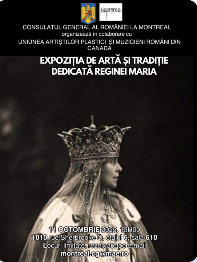 Tribute to Queen Maria of Romania, Consulate General of Romania in Montreal and UAPMRCA, curators Consul General Mrs. Tullia-Imola Balla and Mrs. Rodica Vinca, Montreal, 2025