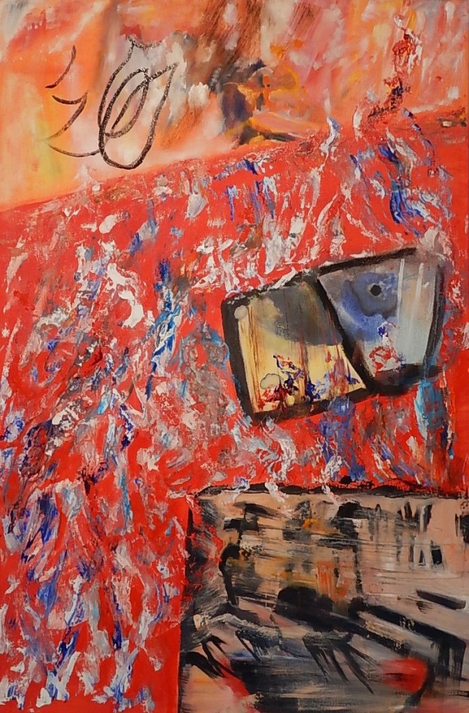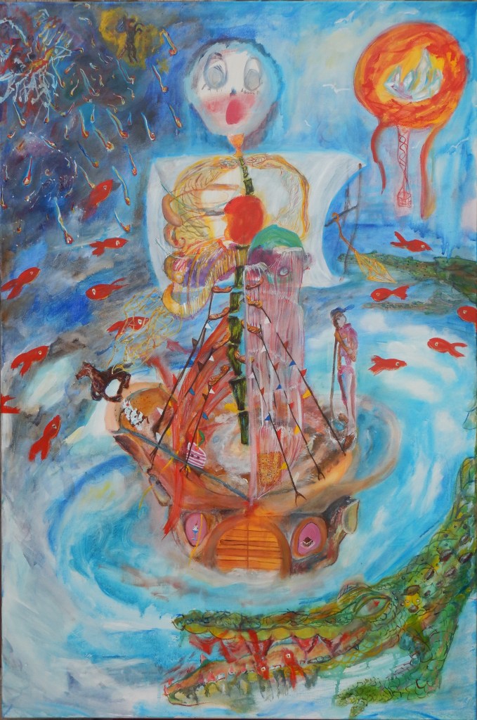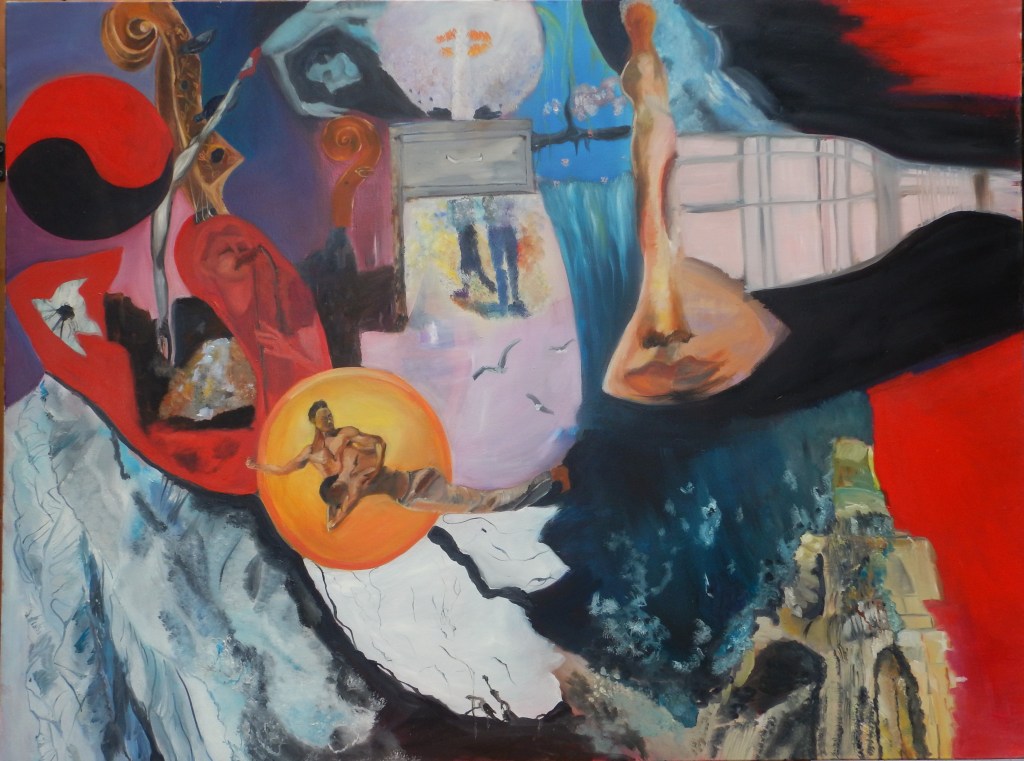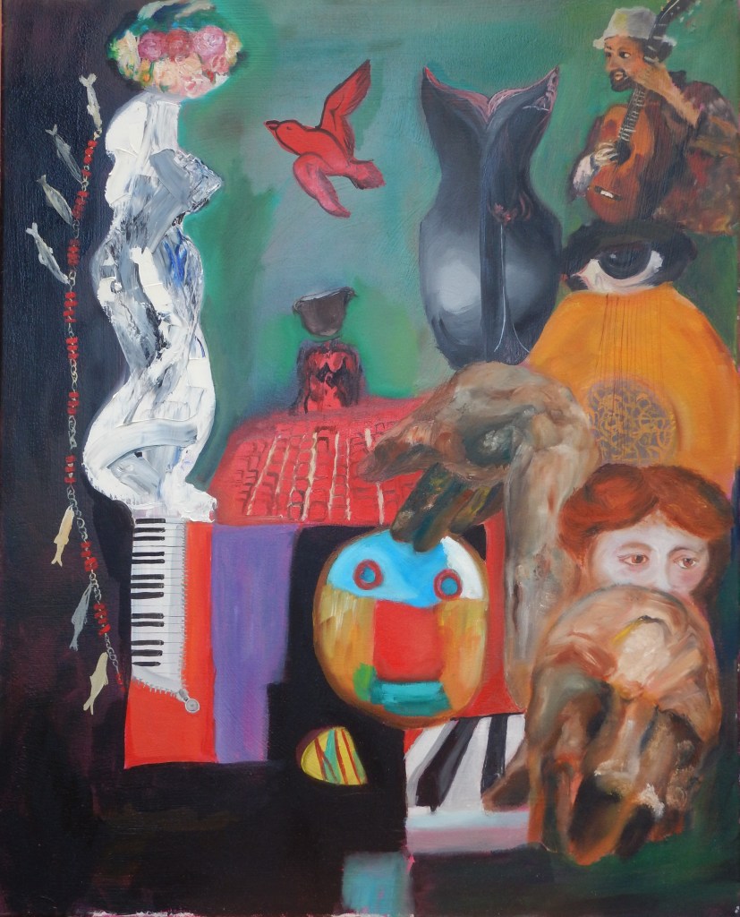 I am what I eat, Acrylics and oil on canvas 36×24 sq in, 2021