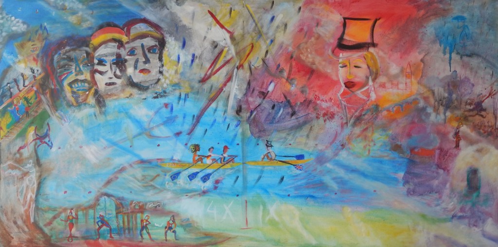Rowing in big waves, Oil on canvas, 36 x 24 sqin, 2019
