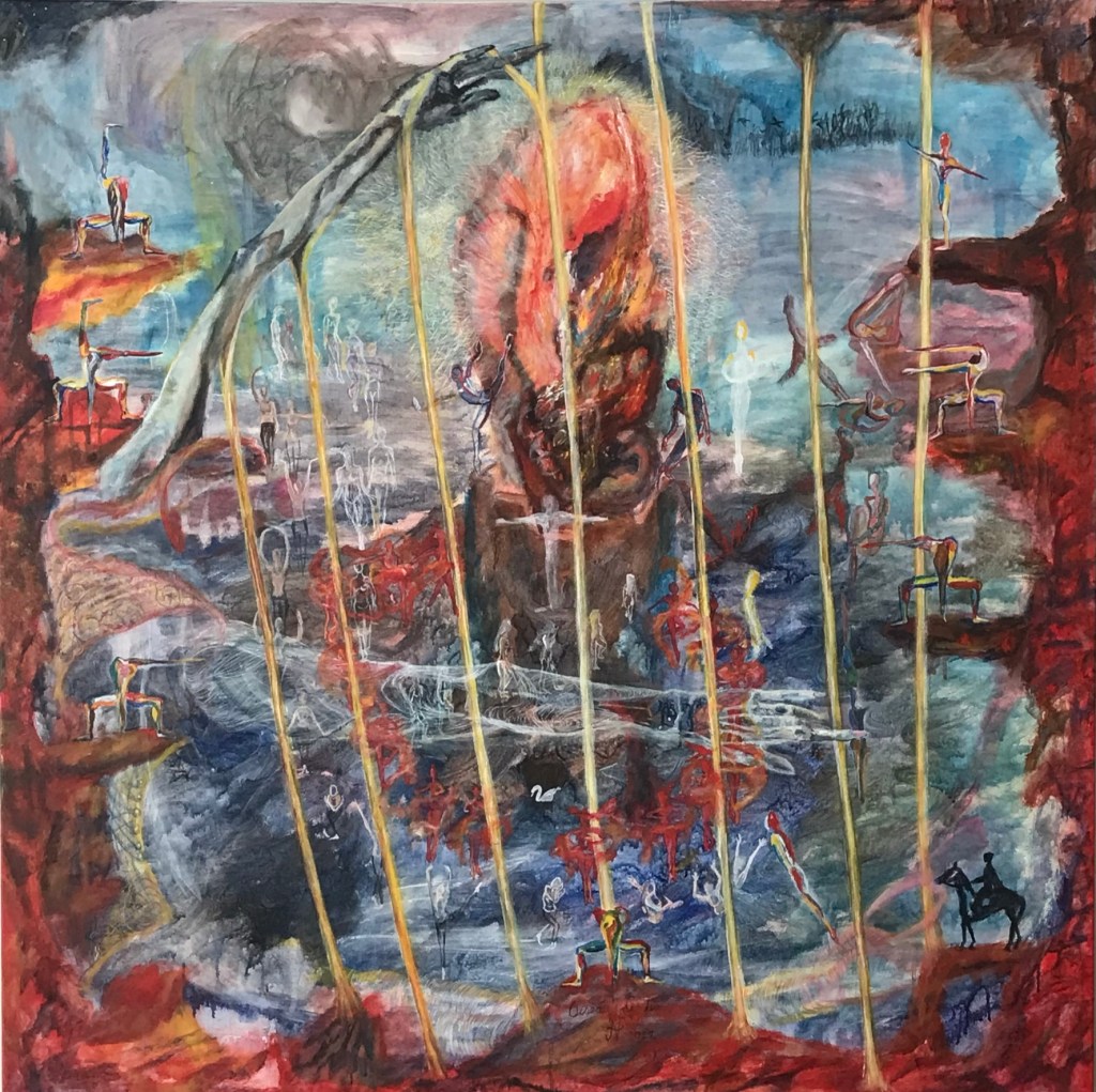Oiseau de feu / Firebird, Acrylics on canvas , 40×40 sqin, 2022