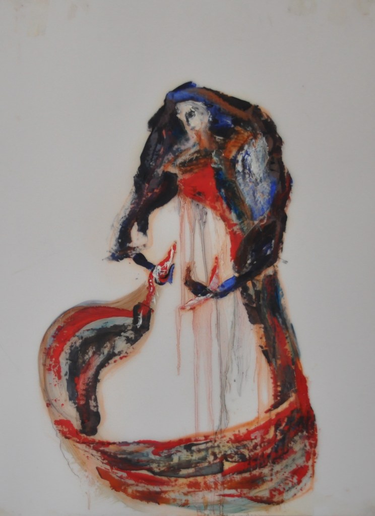 Paloma, Acrylics and ink on canvas, 36 x 24 sqin, 2021
